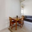 The bedroom is fully furnished. The bed is a queen size with a 4-door wardrobe. There is private AC, a big desk + a chair. It's the biggest bedroom in the apartment.