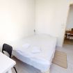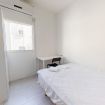 The bedroom is fully furnished. The bed is a queen size with a 4-door wardrobe. There is private AC, a big desk + a chair. It's the biggest bedroom in the apartment.